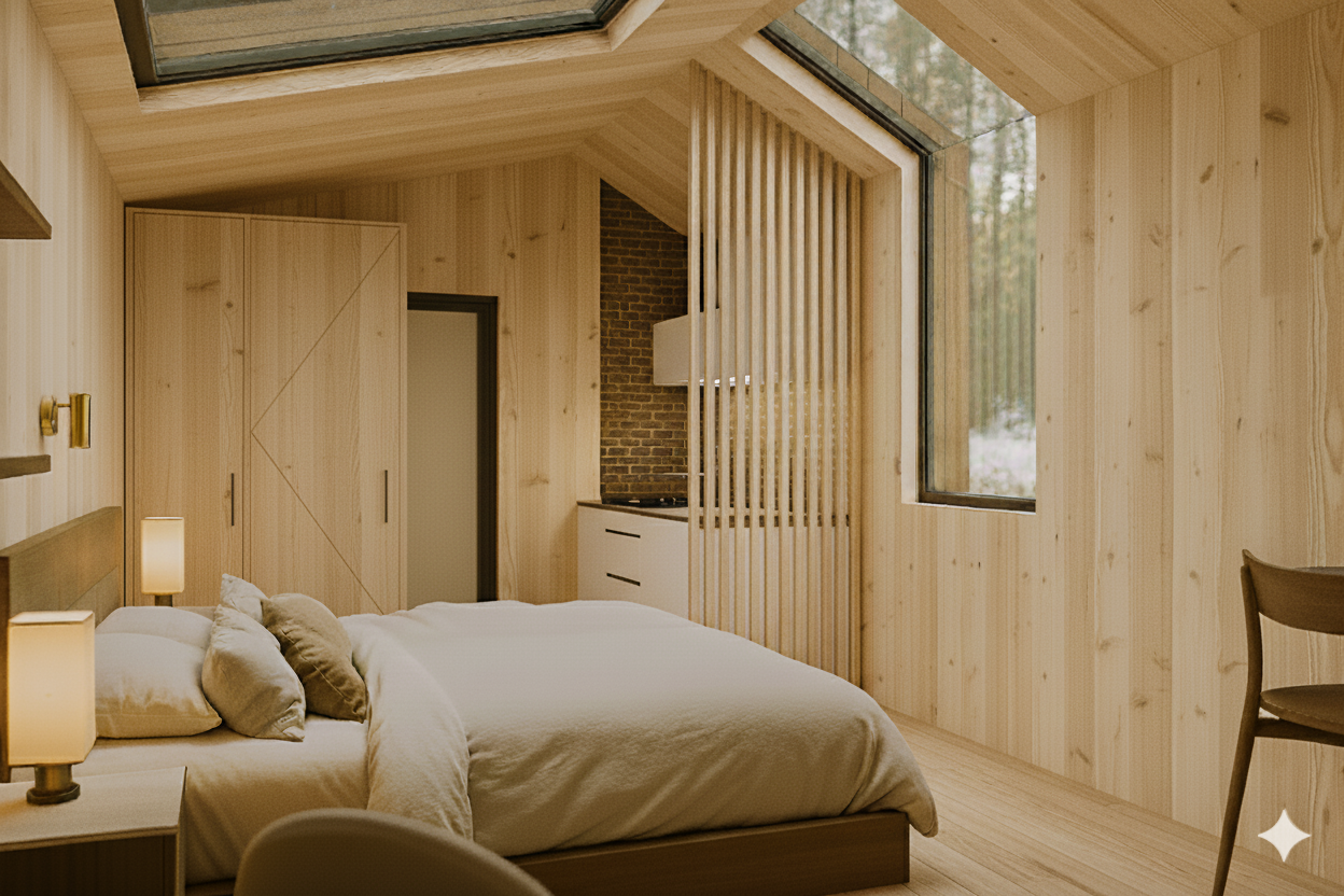 A timeless, tranquil atmosphere → created by our expert interiors team using Nordic, Scandi, and Japanese-inspired biophilic design.